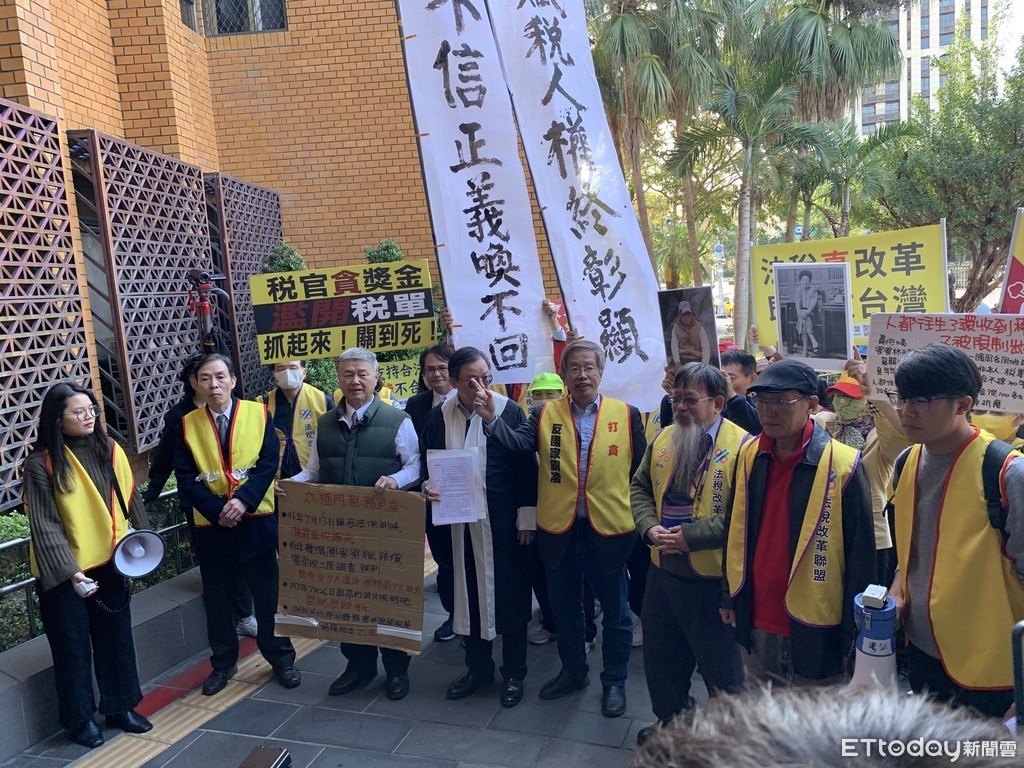 ▲稅改團體29日到台北地檢署控告國稅局官員涉嫌違法徴收罪 。(圖/記者劉昌松攝)