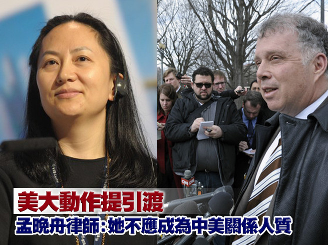 美國司法部今天正式對華為公司及孟晚舟等提出起訴,並聲稱將向加拿大要求引渡孟晚舟,此舉恐讓美中關係更加緊張。對此,孟晚舟的律師表示,她不應該成為中美關係的抵押品或人質;華為公司稍早也發出中英文聲明稱「非常失望」,並否認一切不法指控。