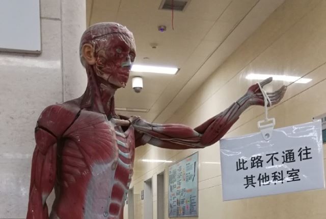 如果半夜想上廁所時,看見走廊上站著人體肌肉模型,大家都會嚇傻吧!位在四川成都的華西醫院溫江院區,近日被網友點名說走廊上站著一個人體模型,嚇壞不少病人。院方表示,之所以會這麼做是迫於無奈,因為許多人往往不認真看告示牌,就直接開口詢問,只好搬出模型讓大家更有印象。