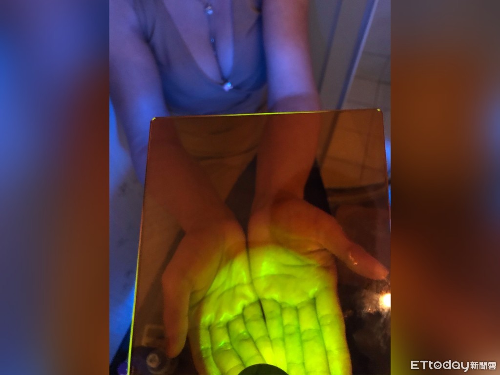 新北市三重區碧華街上一家泰式養生館,日前有民眾頻繁檢舉半套性交易服務,警方29日持搜索票前往查緝,當場看到一名泰國女穿著火辣,頭部在男客胯下不斷晃動,男客則一臉爽歪歪模樣,雙方卻矢口否認有性交易;經過員警拿出多波域光源往泰女雙手一照,立即浮現出精斑的淫(瑩)光反應,讓她百口莫辯乖乖認罪。