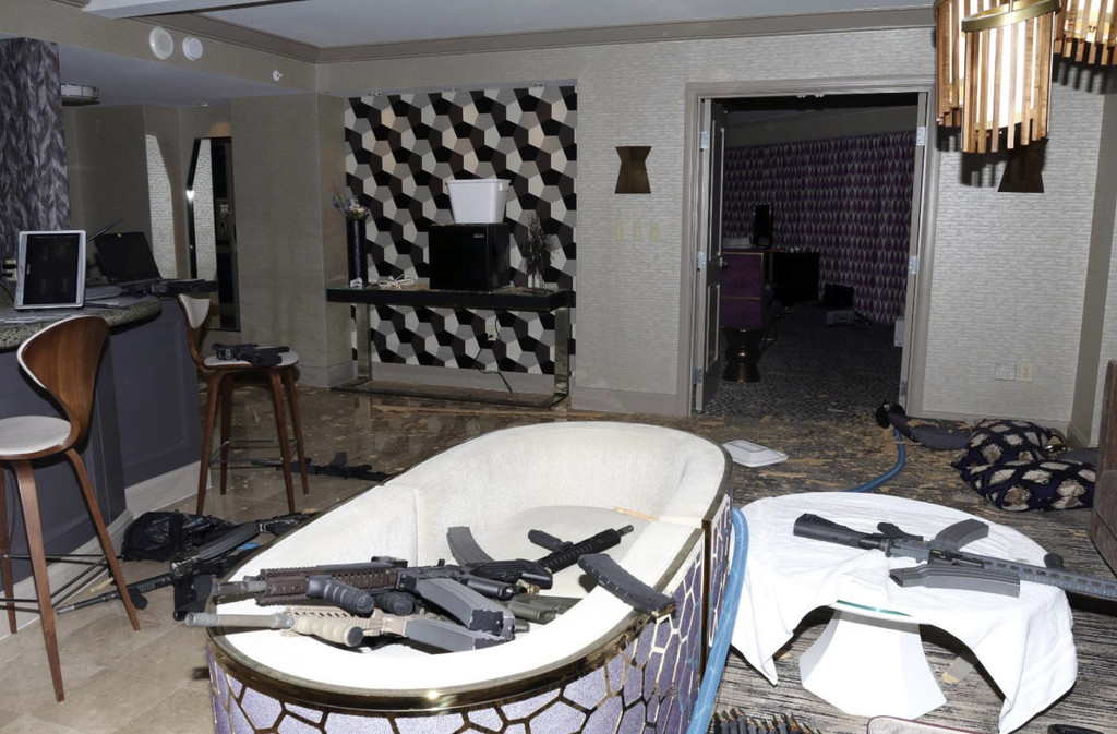 ▲▼槍手房間內有數十把槍與上千發子彈。(圖/達志影像/美聯社)