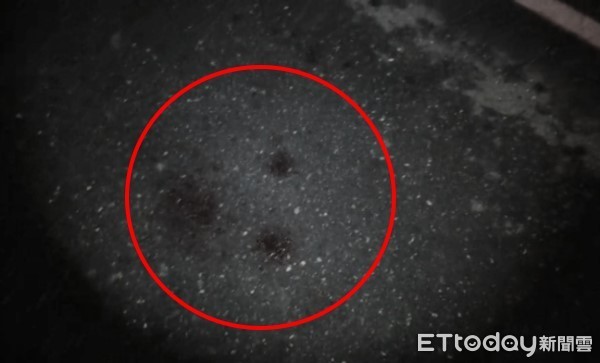 ▲事發地點路面留有林姓少年的血跡。照片經過變色處理。(圖/記者楊均典翻攝,下同)