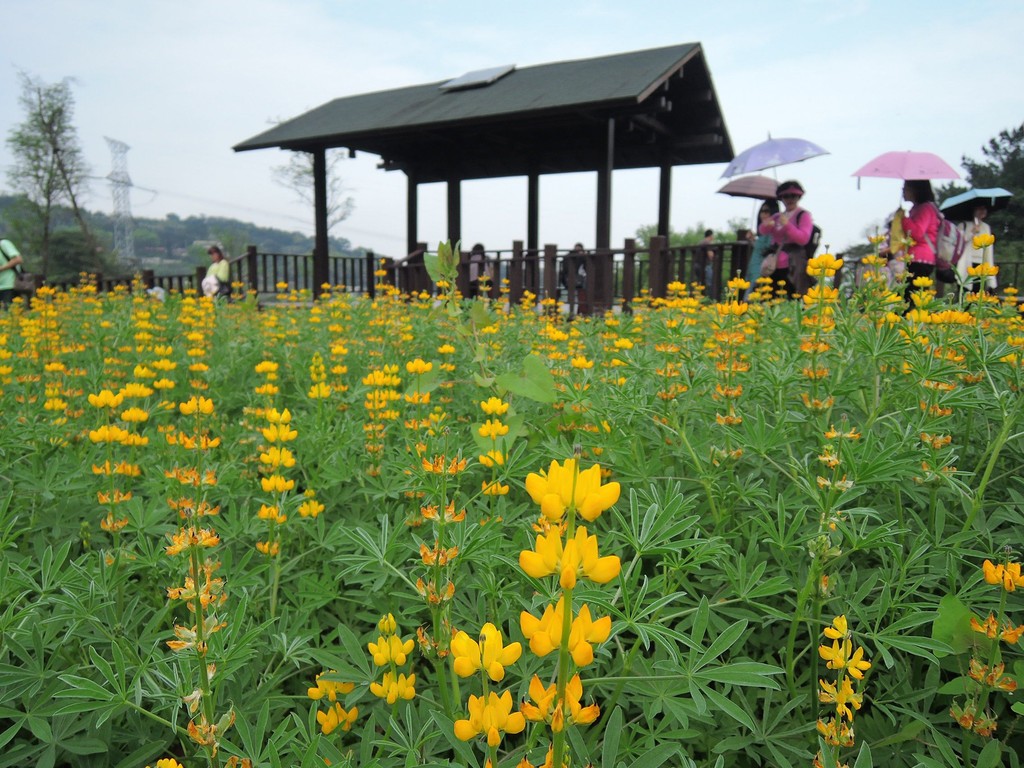 大地處道路步道科長陳彥成說,這期魯冰花很配合,總面積約3000平方公尺的花海,現在多已含苞待放,更有部分已等不及新春的召喚,先行探出頭來隨風搖擺,向遊客們招手,預期可在農曆春節期間盛開,屆時翩翩落羽襯托出滿滿的金黃色風鈴,搭配粉色櫻花點綴,非常令人期待。