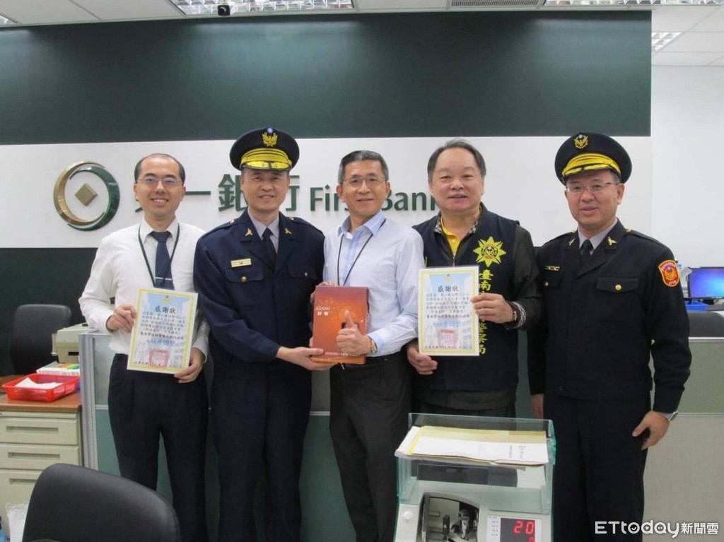 ▲新化分局長方國璽,至銀行頒贈感謝狀致意,感謝各金融機構主管、行員的義行。(圖/記者林悅翻攝)
