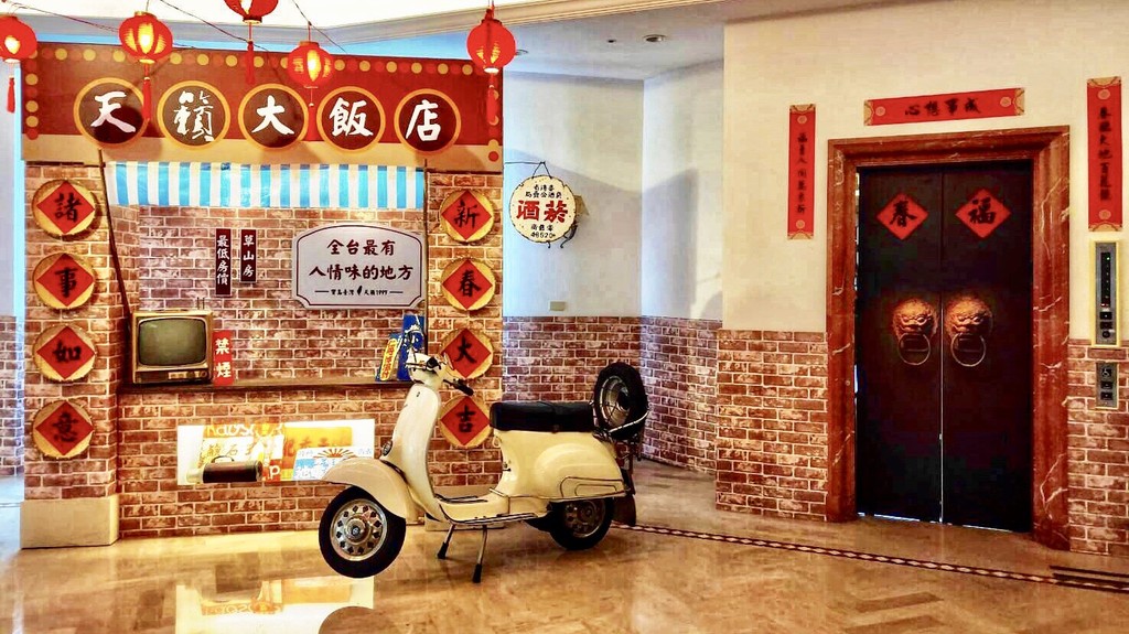 「新年到、穿新衣、戴新帽、熱熱鬧鬧放鞭炮」守歲、放鞭炮是許多五、六年級生共同的回憶,尪仔標更是小男生展現威風神氣的一種象徵。為了讓民眾重新走入時光機,回到美好淳樸的年代。陽明山天籟渡酒店特地找來黑白電視機、留聲機、偉士牌機車等代表性文物,將飯店從裡到外以5、60年代復古風呈現,並邀請金蝶獎得主、「那個鳥年代」作者黃聖文先生,在和風館藝文走廊展出「那些珠圓玉潤的鳥日子」特展。
