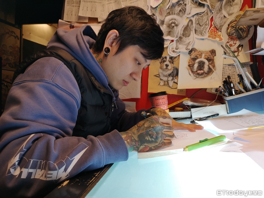 ▲刺青師陳漢武會利用時間加強自己繪圖實力。(圖/記者黃彥傑攝)