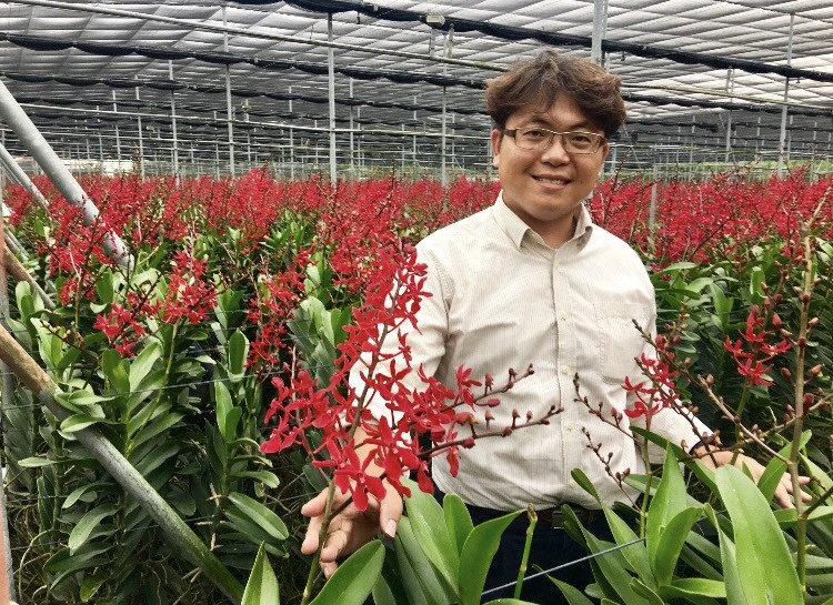 今年獲全國十大模範農民的陳宏志畢業於高雄餐旅大學,現在也是高雄餐旅校友會全球總會會長,他說在種文心蘭的父親10多年前退休,讓他決定返鄉利用家中土地,投入經濟價值更高的花卉作物,並以「外銷」為出發點,由於只有單一文心蘭競爭力不夠,延伸蘭花品種,採多元發展,目前主力除文心蘭 ,還有腎藥蘭和萬代蘭等。