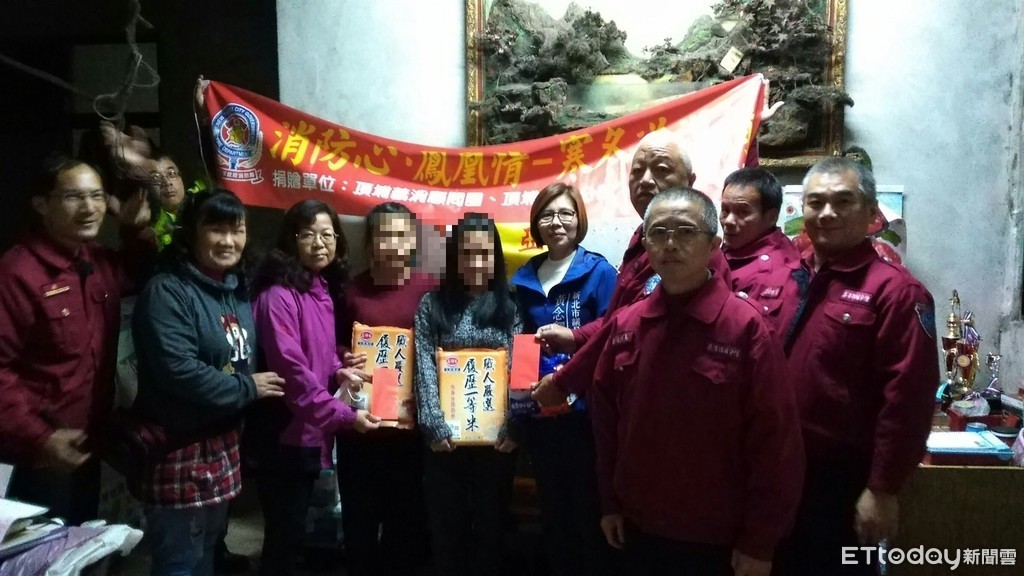 新北消防頂埔分隊日前出勤時,從土城區祖田里里長呂惠美口中得知,轄內梅婦經濟狀況很差,為了省房租和水電,寄居親戚空房,入夜連燈都不敢多開。消防人員攜帶民代捐助的乾糧前往慰問,得知梅婦還有2名分別就讀國中、國小的女兒,且對藝術、運動很有興趣,表現傑出曾獲不少獎項。