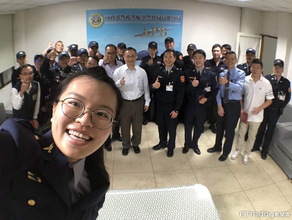 ▲警政署長陳家欽前往高雄小港機場慰勤,受邀玩自拍展現親民風格 。(圖/記者吳奕靖翻攝)