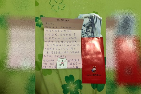最感動的一次年終!一名男網友在臉書爆廢公社PO文,表示今年公司沒發年終獎金,但見身邊好友都有,忍不住向交往了6年的女友抱怨,沒想到女友聽完後竟偷偷在枕頭下塞了大紅包,裡頭除了6張千元大鈔外,還有一封感謝信,「你說你沒有年終,就由老婆包給你囉!」令原PO看了當場感動不已。