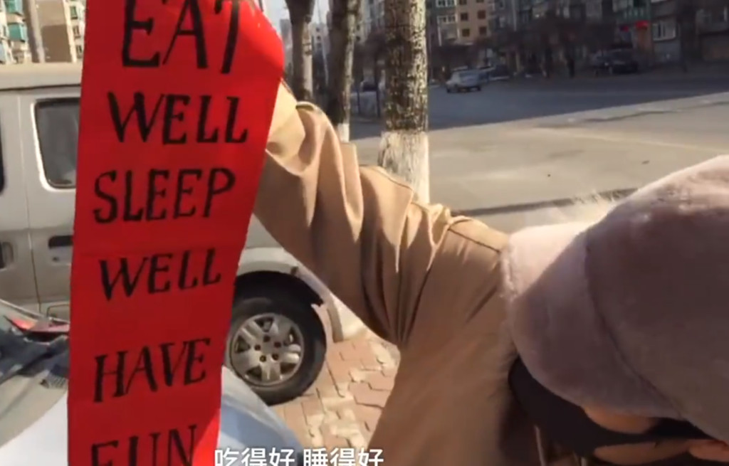 據《梨視頻》報導,可以在影片中看到,春聯中兩側的英文字分別是「Eat well sleep well have fun day by day」、「Study hard work hard make money more and more」;而上幅的英文則是「Everything goes well」,相當特別。