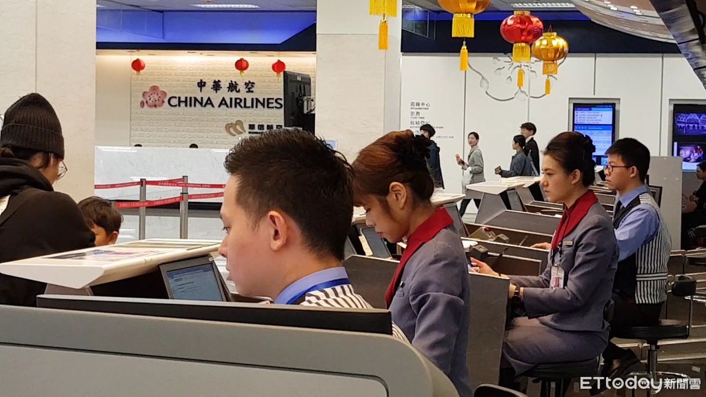 ▲華航罷工第二天松山機場華航櫃檯人員及旅客。(圖/記者呂佳賢攝)