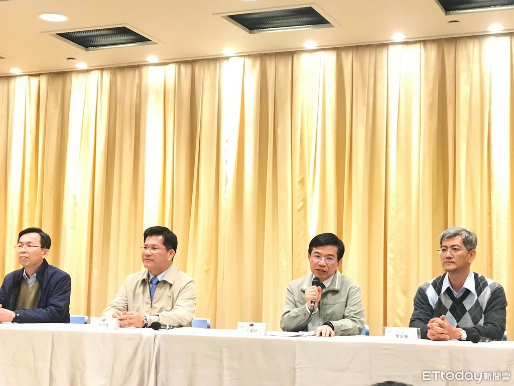 ▲華航勞資協商破局,交通部長林佳龍與政次王國材出面說明協商內容。(圖/記者賴文萱攝)