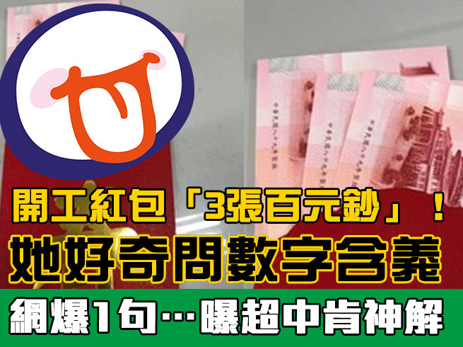 一名女網友在臉書《爆廢公社公開版》貼文,PO出她領到的300元開工紅包,文中詢問「有人知道開工紅包三百的意義嘛?去年也是三百!不懂這個數字的意義」。話題吸引網友討論,大家紛紛留言猜「無三不成禮」、「不是都66大順嗎」、「300=上班的意思嗎」、「開工了,殺吧,三百(台語),上吧」、「三陽開泰」。