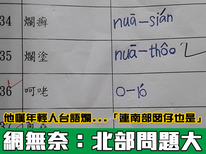 「80年次以後會說台語的是不是很少?」一位網友日前在PTT八卦板上表示,經過觀察,他發現現在許多台灣年輕人普遍不太會說台語,連南部也不例外。對此部分鄉民表示「北部問題很大」,不過也有許多年輕人回文表示自己會講台語,「只是外出比較少用到」。