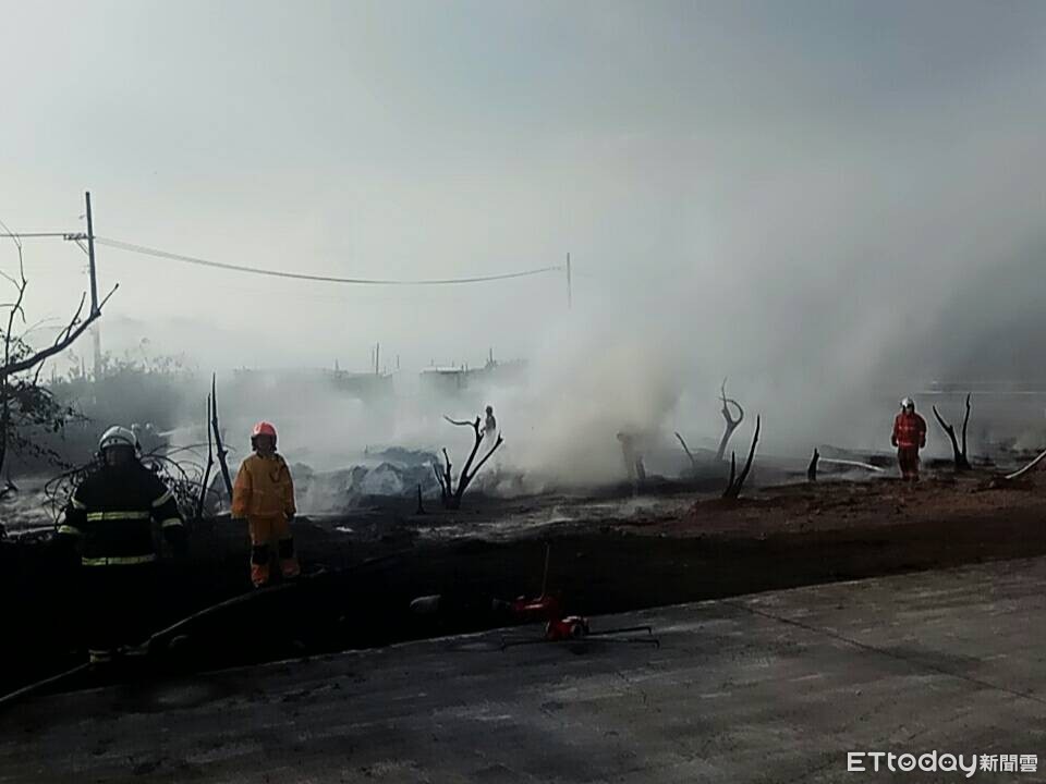 ▲港西抽水站空地發生火警▼火勢撲滅,仍有濃煙