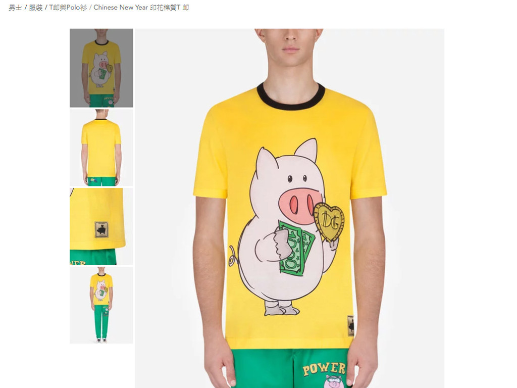 ▲D&G新出豬年T恤,遭疑諷刺大陸民眾「人傻錢多」。(圖/翻攝自D&G官網,下同)