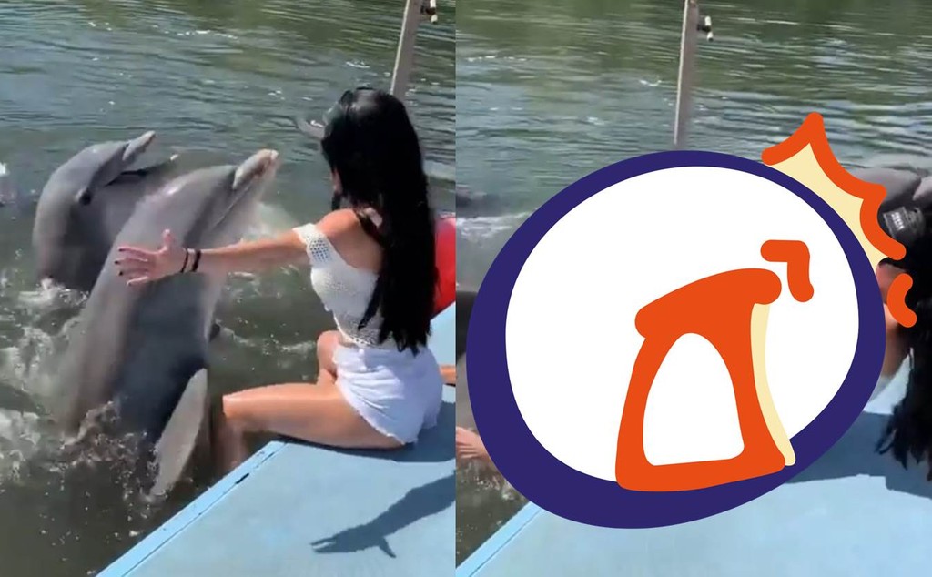 性感女模蘿絲(Pripri Rose)近來到古巴一海洋公園遊玩時,竟然發生遭海豚「硬上」的慘案,她伸手要和海豚互動時,沒想到對方熱情到整隻壓在她身上,身體還不斷上下晃動,嚇得她不斷慘叫,事後尷尬表示,「海豚大概愛上我了吧」。