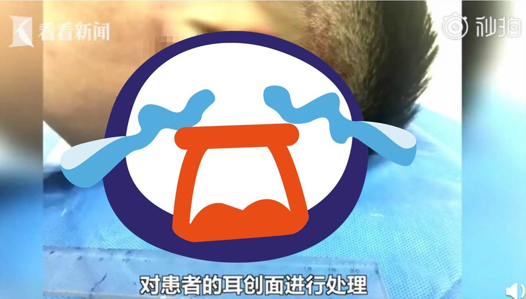 ▲男子被咬掉的左耳,由於無法立刻接回,只好先「種」在腹部裡。(圖/翻攝自大陸《看看新闻Knews》的秒拍)