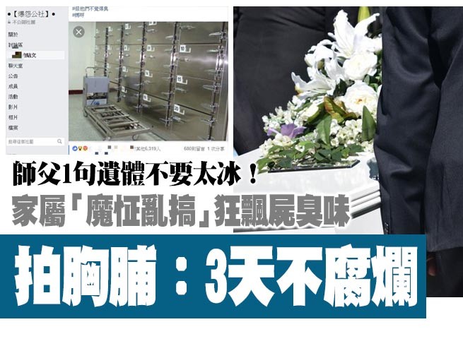 當時,網友曾無意間聽到,家屬信誓旦旦地說,「有經過佛教師父來助念,所以放3天不會爛」,那時他就有不祥預感;果不其然,等遺體入冰櫃後,對方動不動就偷關冰櫃或偷調溫度,「從零下10度給我調成5度,當下真的嚇死我的毛了!」