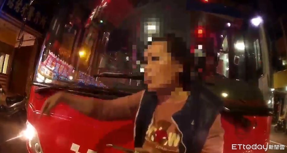 從影片中可以看見,婦人對公車又踢又踹,還指著駕駛座破口大罵「招手了還不停、故意的」,接著還推車頭,當公車司機想倒車離開,居然還不罷休,繼續狂推公車頭叫囂。