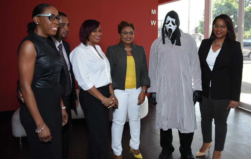 ▲「牙買加超級樂透」得主扮「驚聲尖叫殺人魔」出席領獎。(圖/翻攝自twitter)