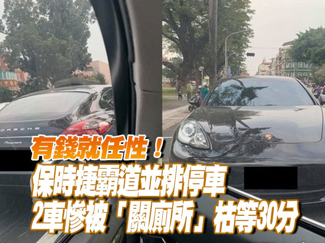 有錢真任性!一名網友在臉書《爆廢公社》中貼出數張令人生氣的畫面,他日前開車去接送小孩放學,將車乖乖停在停車格內,想不到接到小孩時,他竟被一輛保時捷並排停車「關廁所」,他耐心等候車主移車,前後足足等了30分鐘,不少網友也氣的幫腔「快檢舉讓他被拖吊」。