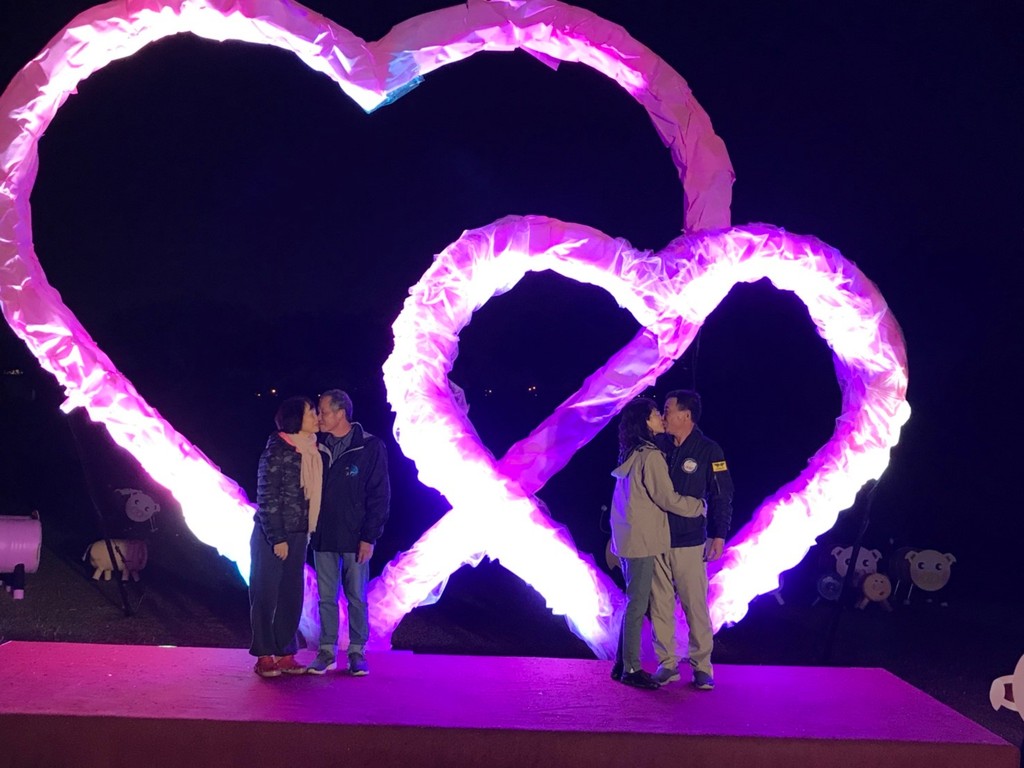 ▲▼迎接西洋情人節,三星鄉公所在安農溪驛站文創豬牧場增設心形光雕(上圖),心形光雕與加落羽松秘境的夜間燈光秀,要讓情人們感受浪漫情人節。(圖/三星鄉公所提供,下同)