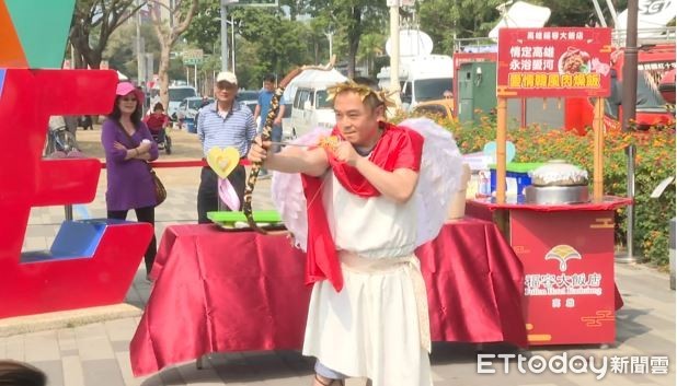 高雄新市長上任後力拼愛情產業,不僅愛得濃烈還要愛得瘋狂,14日情人節號召滿18歲情侶檔跳愛河示愛,由男士跳入愛河大聲對岸上的另一伴喊出愛情宣言,共有25對情侶參加。活動由局長潘恆旭化身邱比特,搭乘雙層巴士進場,現場還有阿基師「愛情韓式肉燥飯」等愛情套餐提供現場民眾享用。