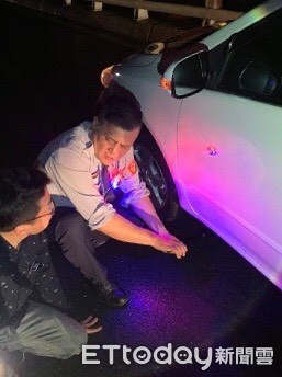 台東縣多良派出所副所長洪昌耀、警員温弘彬等2人日前接獲通報,多良橋上有民眾車輛爆胎,警方抵達現場後,發現有一輛車子停在橋上南下車道,車上的一家人全站在橋邊孤立無援。