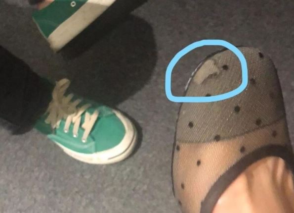 ▲毛小姐聲稱,完全沒撞到,鞋面卻出現明顯破損。(圖/翻攝自環球網)