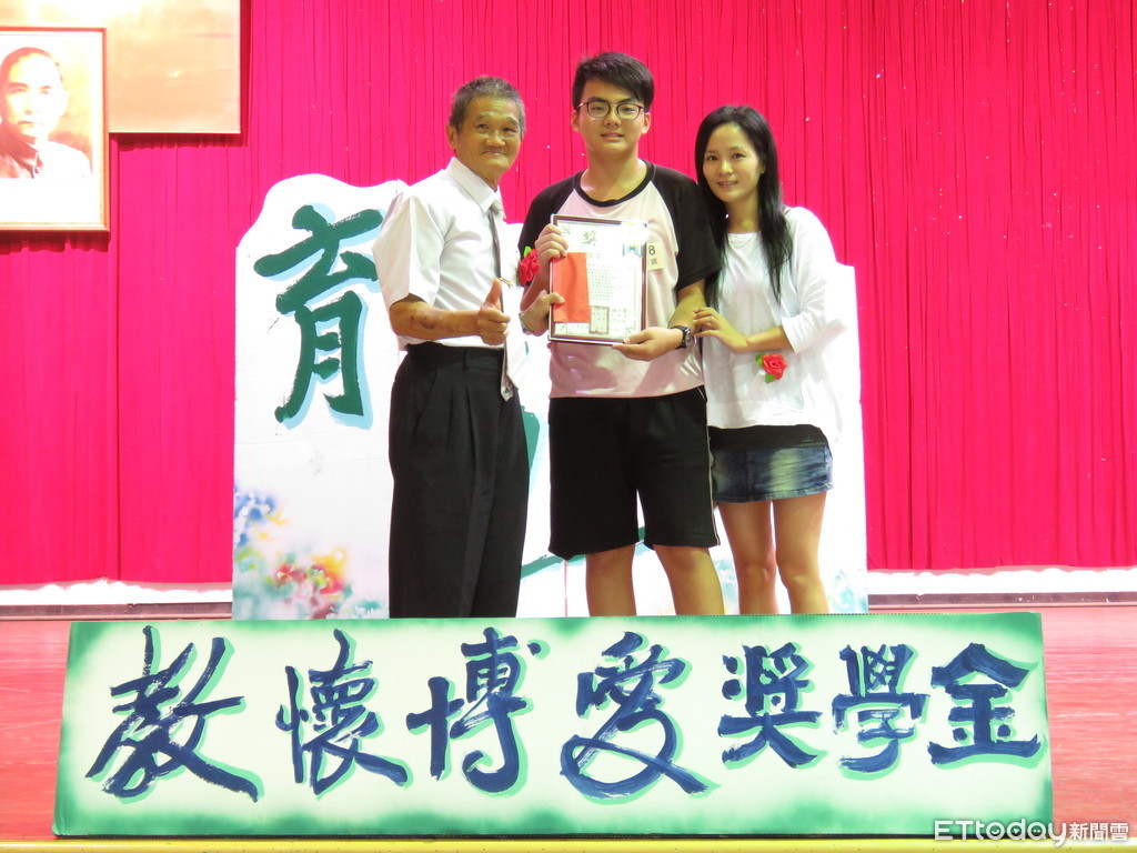 ▲周生財(左一)去年擔任第三屆敎懷博愛奬學金頒獎人,他覺得很有意義。(圖/記者陳崑福翻攝)