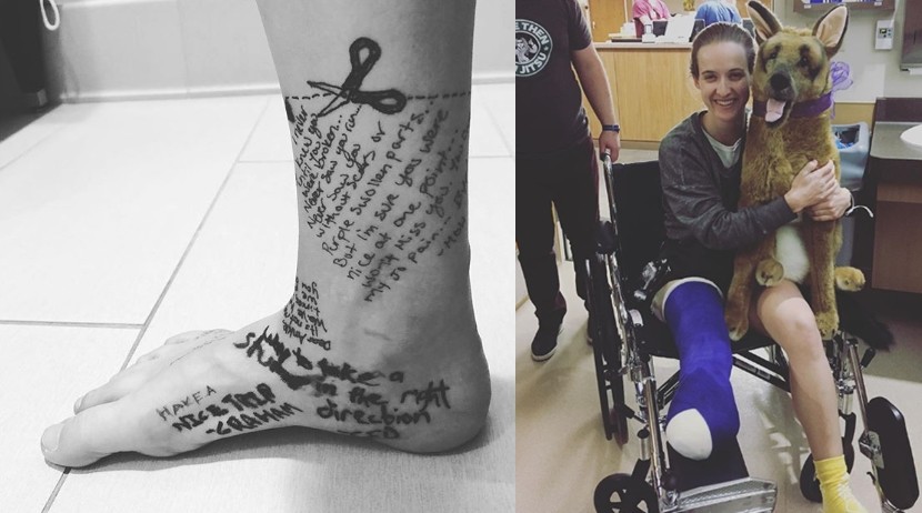 美國科羅拉多州(Colorado)27歲女子喬丹(Jordan Beckwith),14年前因為一場騎馬意外摔傷了腳踝,從此右腳經常隱隱作痛。在經歷多次治療仍無法舒緩疼痛的情況下,她只好選擇截肢。不過就在手術前,她俏皮的在腿部標出了將要截肢的部分,還特別寫了一封與右腳的「分手信」,樂觀又堅強的道別方式讓許多網友相當欣賞。