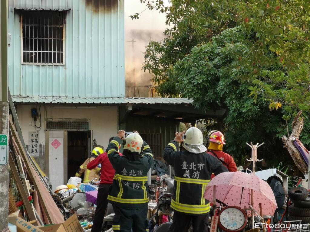 突發中心/台北報導台北市士林區延平北路八段一處鐵皮屋,於15日發生起火意外,所幸事發後屋主及時逃出,而目前火勢正由消防人員搶救撲滅當中。▲士林區一處鐵皮屋發生起火意外。(圖/記者黃彥傑攝,下同)