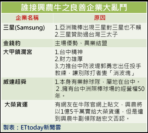 ▲先前南韓三星一度傳出可能接手興農牛,金俊植認為,其實三星已經超越李明博了,三星甚至可以控制李明博。(圖/ETtoday新聞雲製表)