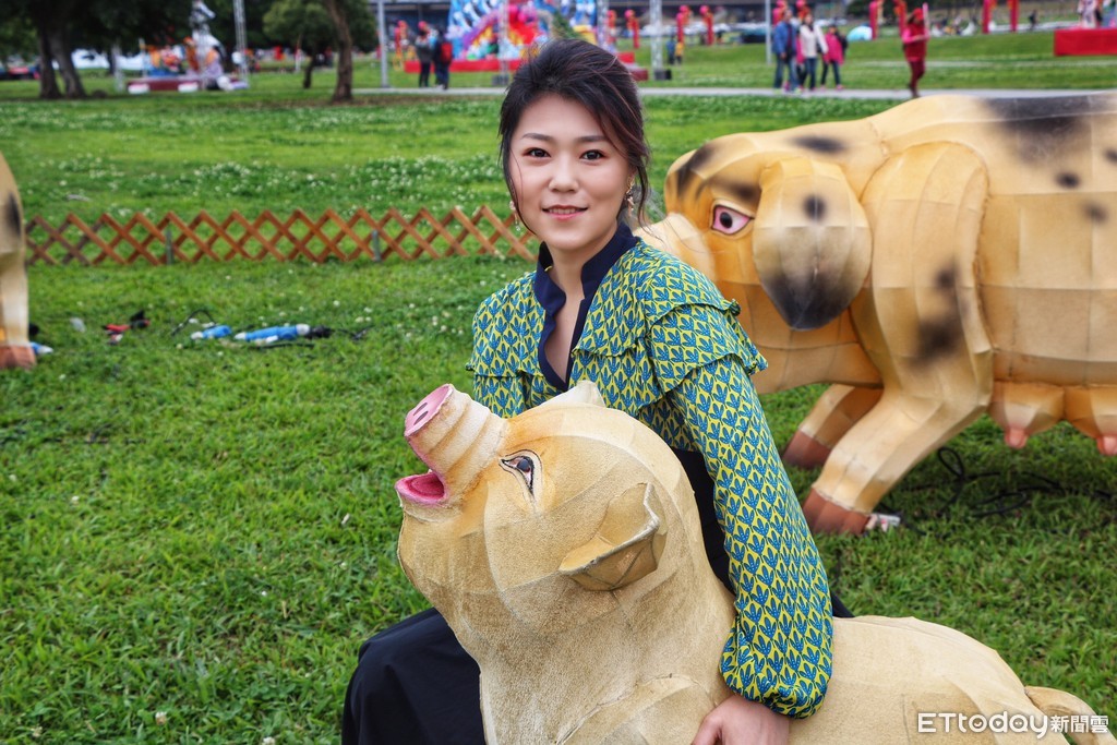 另外,主燈旁的「豬福滿滿」碰碰豬燈區,30顆圓滾滾不倒翁碰碰豬,一碰就發亮,曹雅雯也玩得不亦樂乎,直說超有趣,推薦大小朋友千萬不要錯過,還有一旁草地上由燈藝達人林健兒老師設計製作的12隻大豬、小豬「福滿門」,有開心玩泥巴、招手打招呼的,唯妙唯肖,萌樣爆表。