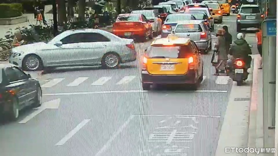 ▲監視器錄下賓士車暴衝過路口的一瞬間。(圖/記者張君豪翻攝)