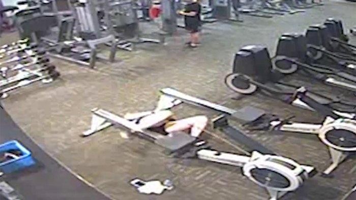 ▲ 艾蜜莉當時在做划船機練習。(圖/翻攝自YouTube/GOSSIP NEWS)