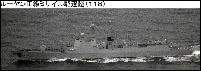 日媒指出,3艘艦艇分別為052D型飛彈驅逐艦「烏魯木齊」號(舷號118)、054A型飛彈護衛艦「臨沂」號(舷號547)和「日照」號(舷號598)。海上自衛隊透過艦載機跟蹤監視後確認,3艘艦艇北上對馬海峽,向日本海(朝鮮和韓國稱東海)方向航行。