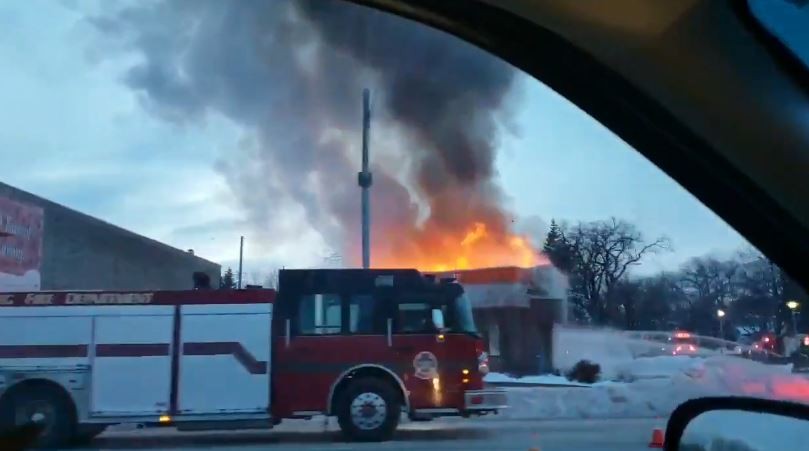 加拿大溫尼伯市一間速食連鎖店A&W日前在營業時突然竄起大火,但這強烈火勢完全沒有阻止客人吃漢堡的慾望,仍繼續在得來速排隊等點餐,完全不知該漢堡店已無法營業,而消防員則在一旁試圖控制火勢。