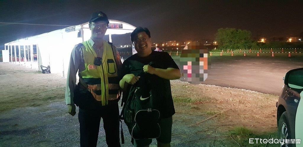 抵達大鵬灣燈會會場後,兩員陪同他在各燈區找尋,最後在他逛展期間中途停留的休息區域找到遺失的後背包,讓焦急的他相當感激,對警方的協助一再致謝。