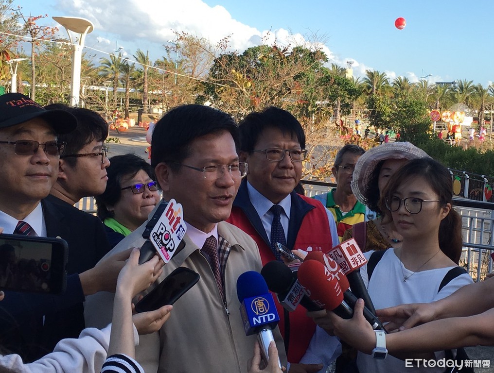 ▲交通部長林佳龍今下午再回應請物流業週日休假變要送蔬果一事。(圖/記者曹悅華攝)
