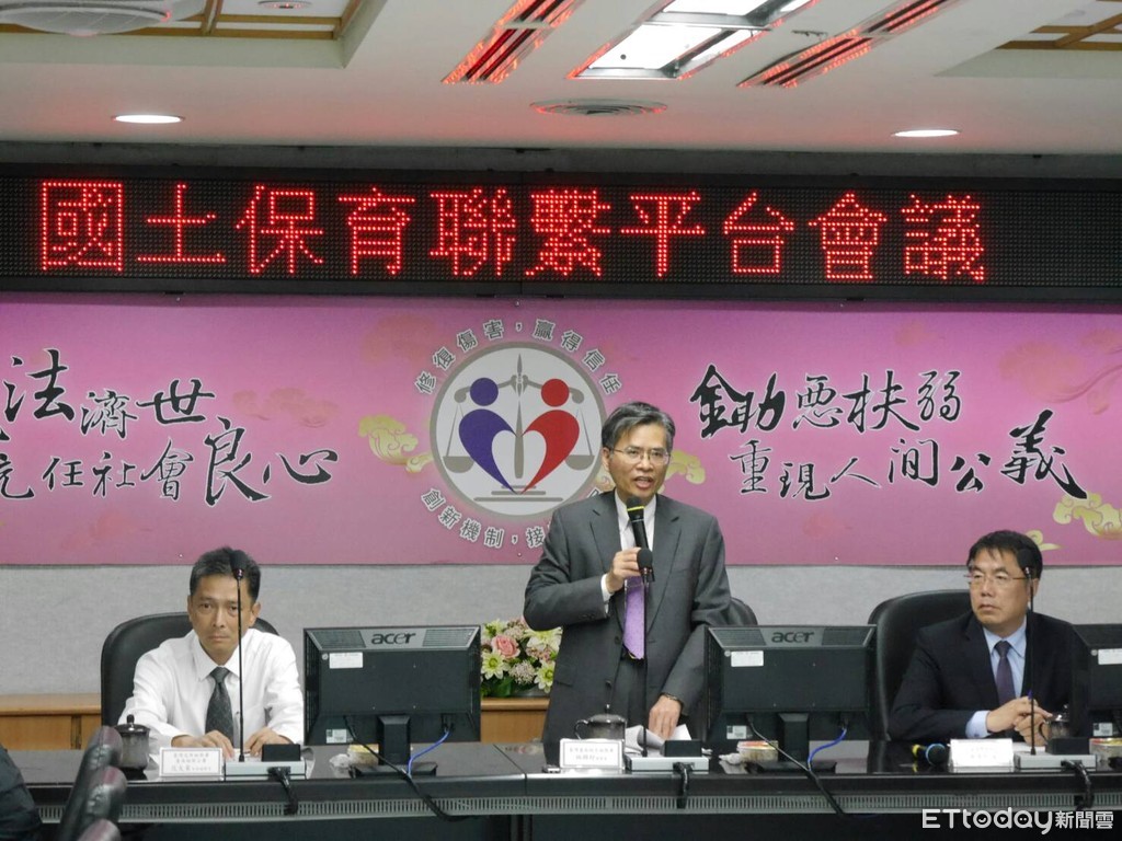 台南市長黃偉哲、台南市調處處長鄭伯卿、台南市警局長黃宗仁等人應邀上台致詞,另邀請主任檢察官范文豪蒞會指導。林檢察長表示,國土保育對國家社會發展至關重要,影響民眾生命、健康至鉅,2013年間齊柏林發表「看見台灣」的美麗與哀愁,驚見國土滿目瘡痍,引發各界重視;冀期透過成立本平臺,深化行政、司法警察機關與檢察機關既有聯繫協調機制,強化聯繫協調頻率與討論議題深度,並透過本平臺間之緊急通報、聯繫功能、情資蒐報、法令彙整、專業鑑定、精進辦案技巧等,更廣大而深入整合能量,將不法國土保育犯罪肅清,輔以查扣犯罪工具及不法所得,削弱減低犯罪者之犯案動機與力量。