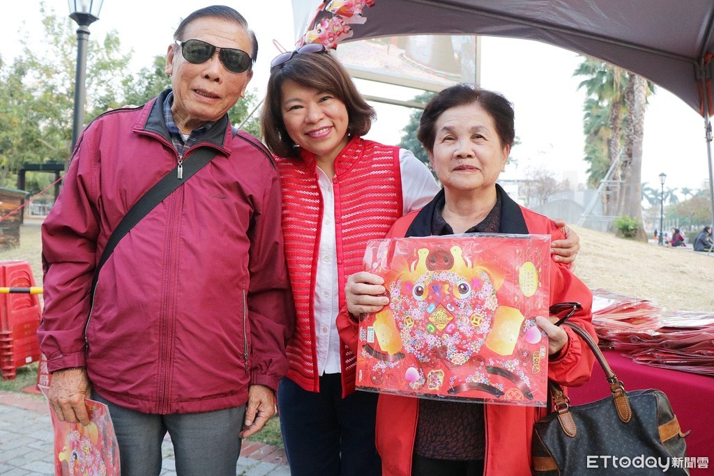 黃敏惠親自發放小提燈給市民,親切和前來領取小提燈的民眾拍照、握手,並祝福大家元宵節快樂,而每個從市長手中領到元宵小提燈的大人和小孩更面露笑容,現場氣氛十分溫馨。