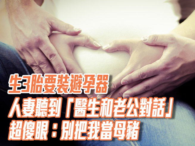 一名人妻生了3名小孩,產後回診滿心期待想裝避孕器,當她聽到醫生和老公的對話超傻眼,「不要把我當母豬OK」?有人好奇問「為什麼不是要妳老公結紮」?原PO回「他覺得我以後一定會想再生」。
