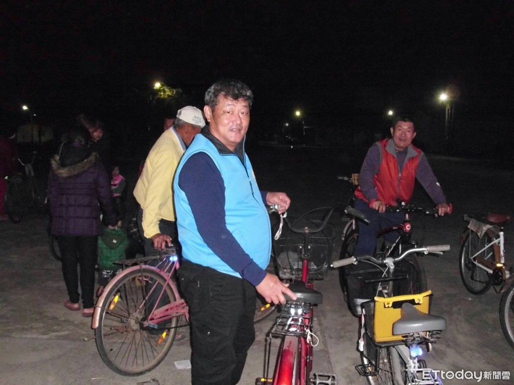 ▲台南市三分局土城派出所員警,為保護高齡者夜間騎乘自行車安全,辦理「火金姑」專案,為自行車裝置後座警示燈,讓長輩們感謝認可。(圖/記者林悅翻攝)