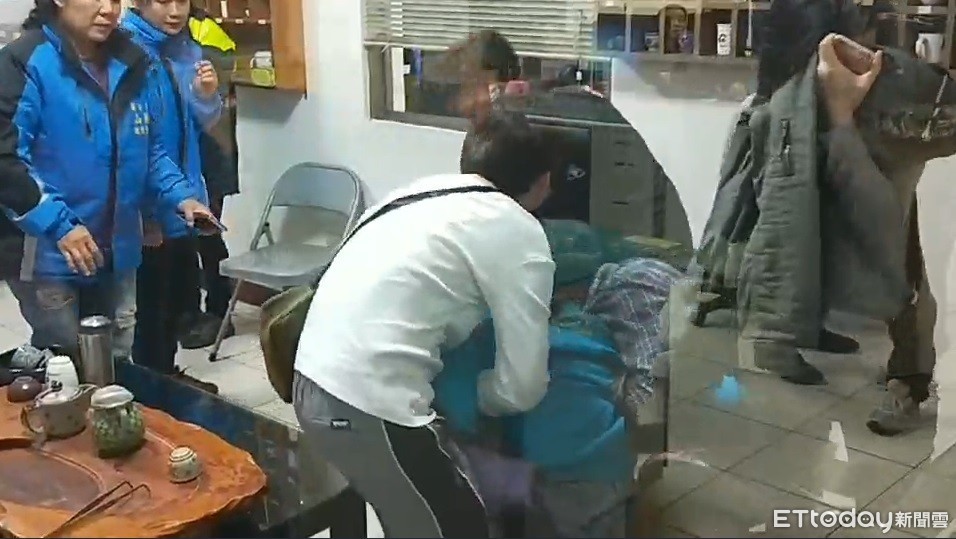 ▼吳女在派出所內下跪致歉,並與家人相擁而泣。(圖/記者黃孟珍翻攝)