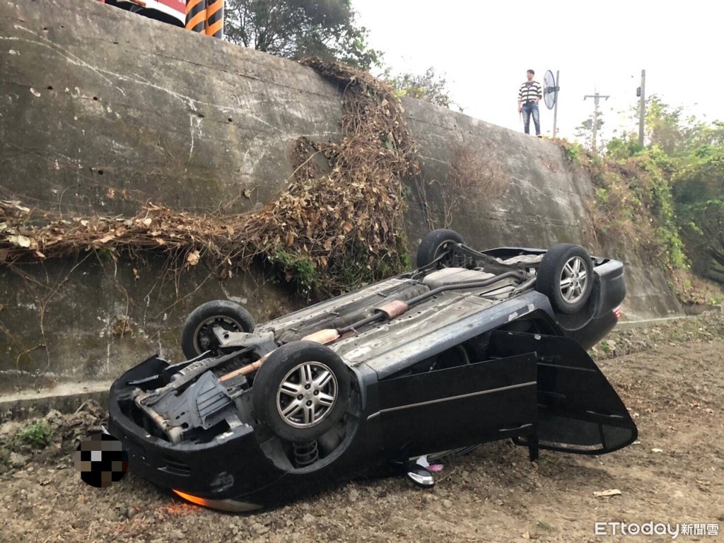 ▲余男開車摔落田裡,疑似酒駕釀禍。(圖/記者黃孟珍翻攝)