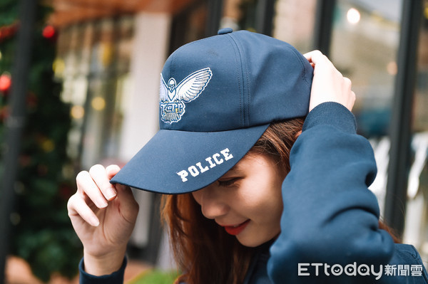 ▲台中市警局找來帥哥美女警楊舒婷當模特兒,穿上限量帽T及紀念帽拍宣傳照,造成網友暴動。