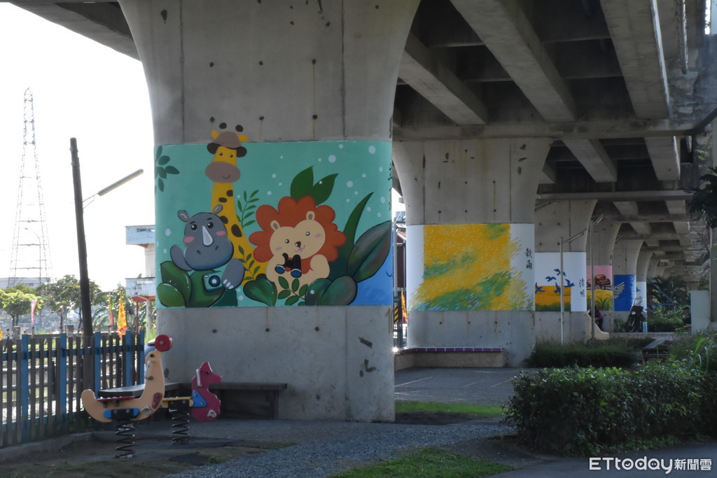 ▲▼宜蘭市凱旋里社區旁的鐵路高架橋墩變美了,26座橋墩經彩繪增添豐富性。(圖/記者游芳男攝,下同)